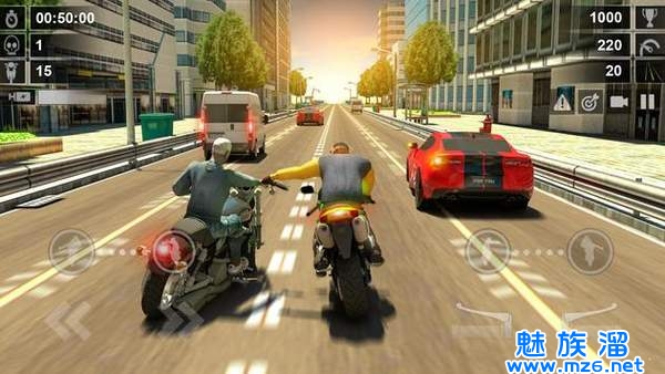 2、玩法简略,驾驶你的摩托车在,不断逾越对手,获得冠军。