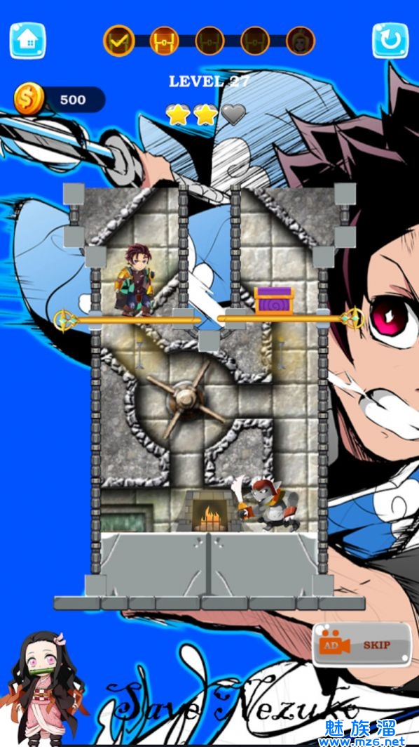 1:救救祢豆子这款游戏所有人都可以来开动自己的脑筋来想想怎么才能顺利的通过关卡,游戏的关卡十分的多;