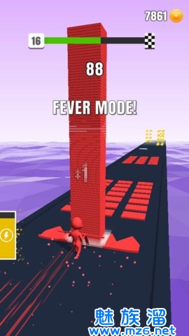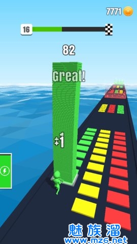 1、随着砖块的堆积越高,你的行径跑酷速度会越来越慢。