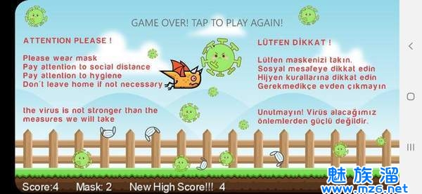 游戏开始后,点击屏幕,记住要间歇性地点击屏幕。