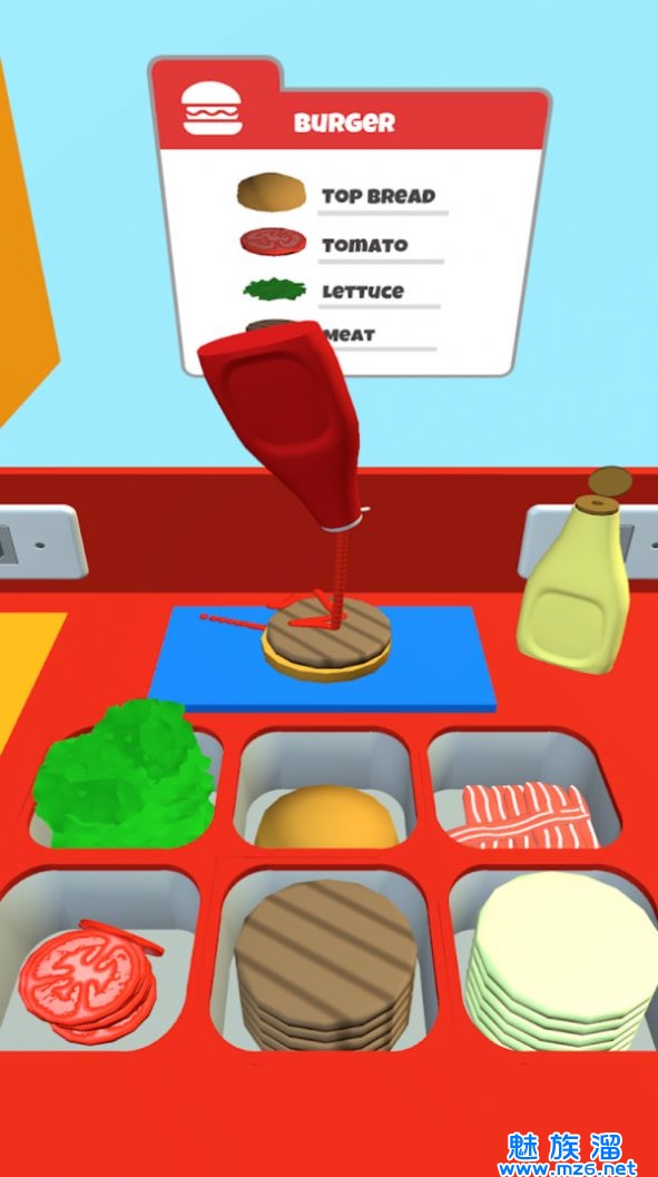 1、一个模拟创建的手机游戏。这允许玩家在手机游戏中创建美味的汉堡包。
