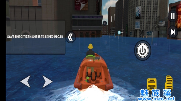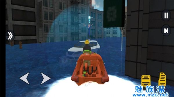 3、游戏的玩法非常的创新,驾驶赛艇在洪水之中刺激的穿行,解救每一个辛存者;