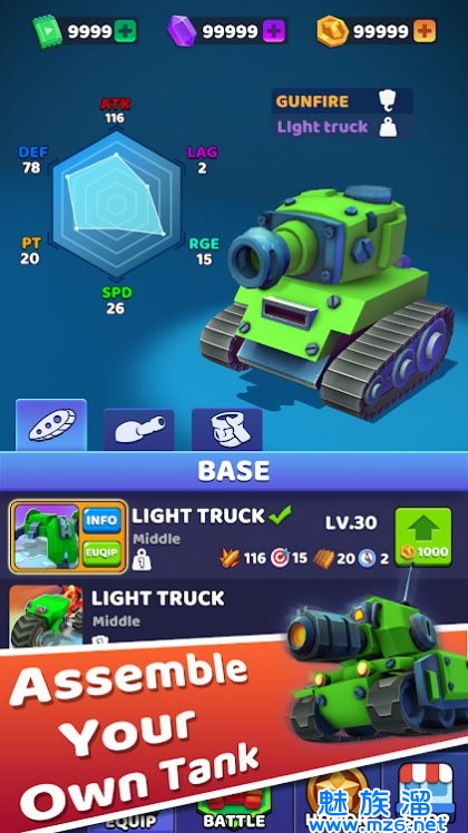 1、坦克的类型非常多,你喜欢什么坦克都可以直接选择,坦克越猛对你的帮助越大;