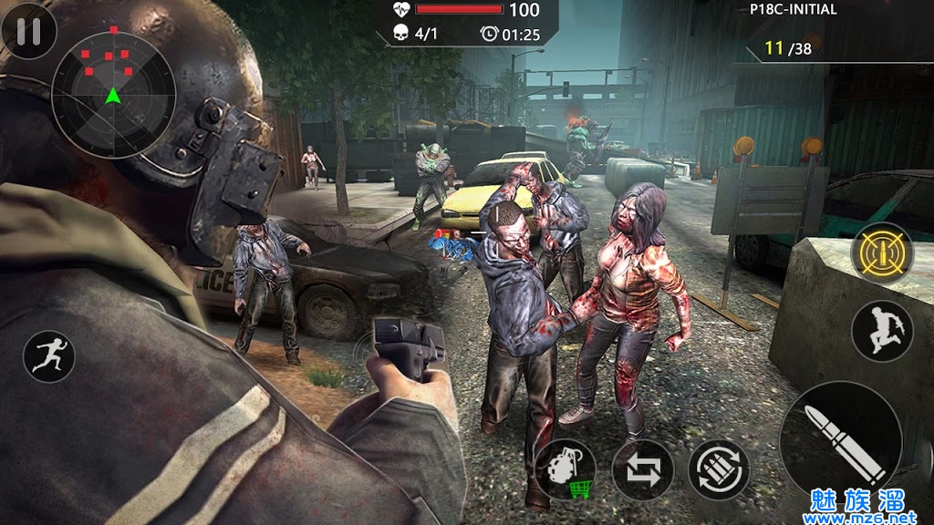 2、每一座城市中都有无数的丧尸存在,你要做的就是击杀头领消灭所有的僵尸让城市恢复往日的平静。