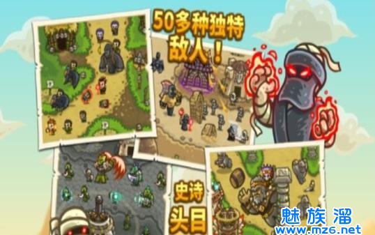 - 在传奇般的头目战中打倒5位不可一世的君王,保卫你的王国!
