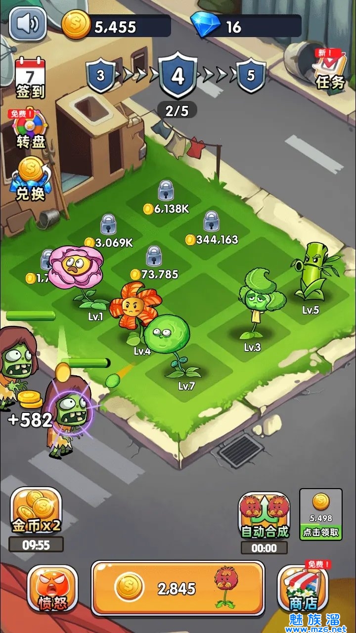 空闲系统,你的花花会自动对抗僵尸,即使您处于离线状态,也可以获得金币;