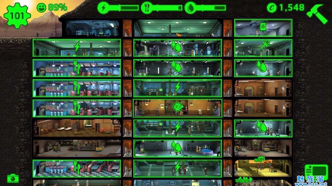1.建造完美避难所创造一个更光明的未来——在!地!下!选择各种拥有不同功能的现代化房间来将2000英尺下的基岩洞穴打造成可以让居民“美好生活”的避难所。