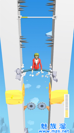 墙壁上会有许多锥形障碍物,您需要提前将其摧毁以避免受伤。