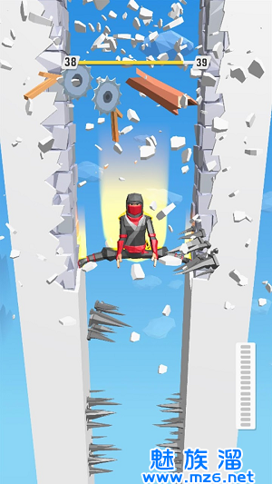 非常激动人心的游戏,您可以用脚踢墙,以减慢跌落的速度,导致墙掉落。