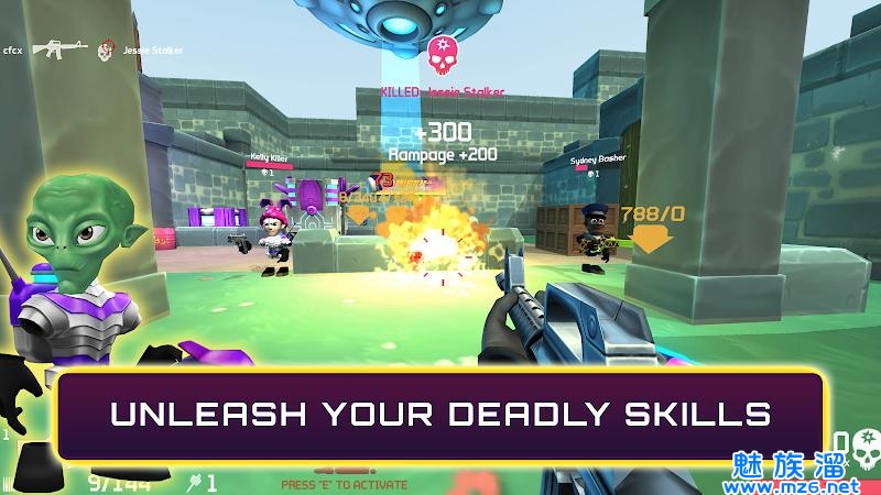 -快节奏的射击动作;快跑,杀人连胜,提高得分并奖励你