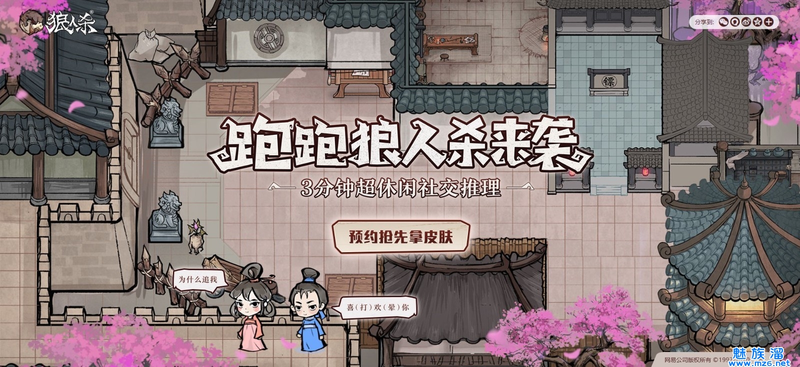 4、事背景设定在古风小镇中,在桃花灼灼的国风场景里,玩家将化身古装Q萌小人,分属狼人战争民两个对立阵营。