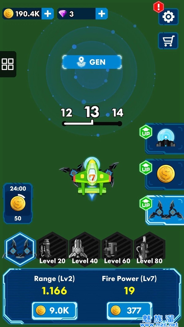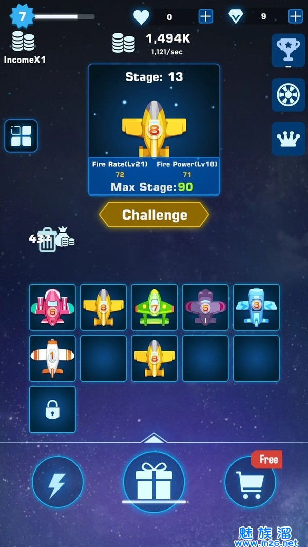 4、收集硬币和钻石,以升级或发展您的飞船来与更强大的敌人作战;1、可以在游戏中免费合成高级战斗机,飞机的水平越高,战斗力和输出越强。