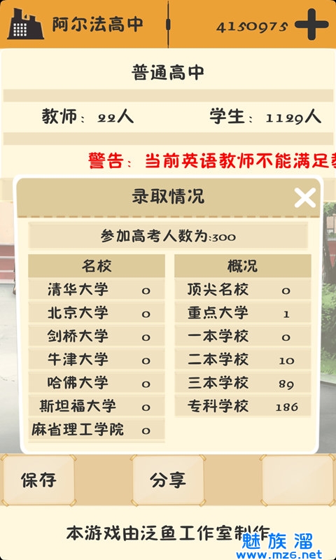 一款休闲娱乐游戏。可能你玩过很多模拟游戏,但我相信模拟校长的游戏你很少见过。