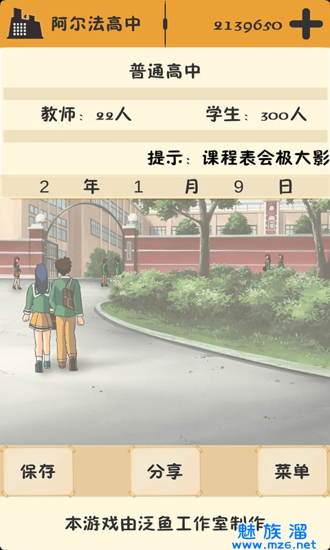 游戏玩法和一般的模拟游戏类似,游戏里作为校长的朋友,你需要做的就是招收更多的好学生,全方面的发展他们,让他们在德智美体等房间全方面发展,当然最终的目标就是在高考中取得各种好的成绩;