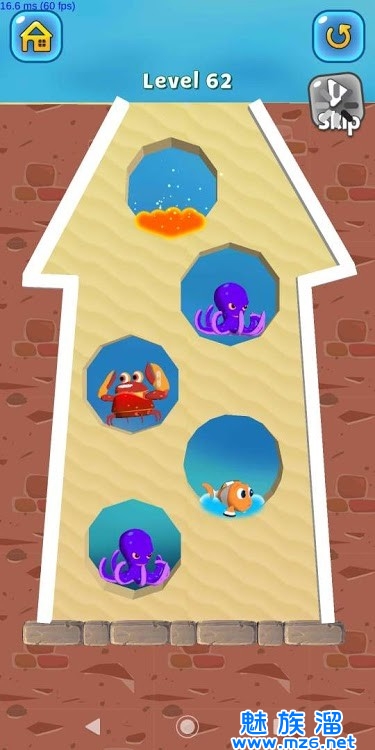 救救鱼儿挖就完了是一款益智的脑洞风暴游戏,玩家在游戏中将会遇到各种搁浅在沙滩上的小鱼和螃蟹各种水生动物,玩家需要将沙滩挖开将海水引进浅滩中引导小鱼重新回到大海,游戏中会有很多的闯关任务,玩家们再挖沙子的时候要注意哦,不要将小鱼的天地连在一起,否则你的小鱼会被吃掉哦,下载救救鱼儿挖就完了吧!