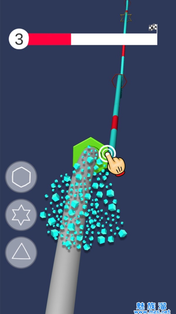 清除管道上的所有障碍物,不要碰到红色的部分,否则你的挑战将会结束,去不断的冲刺高分并解锁更难的关卡,开始闯关并打破记录吧!
