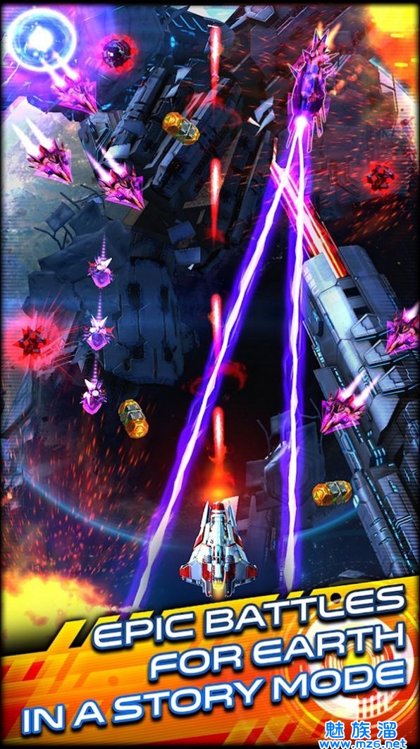 2.升级你的武器还有战机,直面更加强大的敌人,更加完美的视觉体验哦。