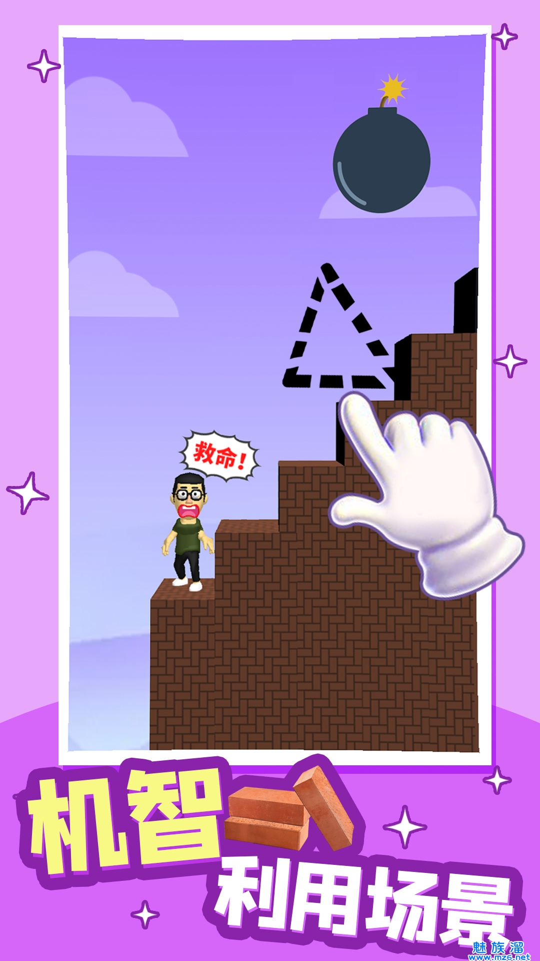 救人模拟器是一款玩起来绝对精彩优秀的绘画冒险闯关游戏,可以看见场景之中的小人处于危险的状态,你需要通过绘画的方式来构建物体,帮助小人成功闯关,完成救人的任务。这样简单的优秀的游戏能够带来无限欢乐的感觉,你可以在最无聊的时候体验欢快娱乐的玩法!
