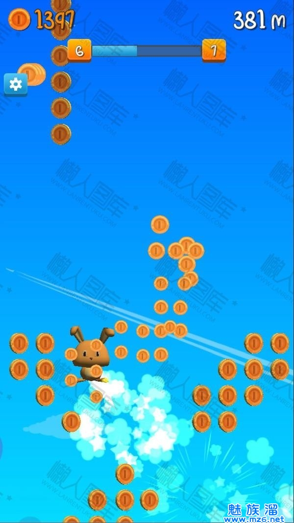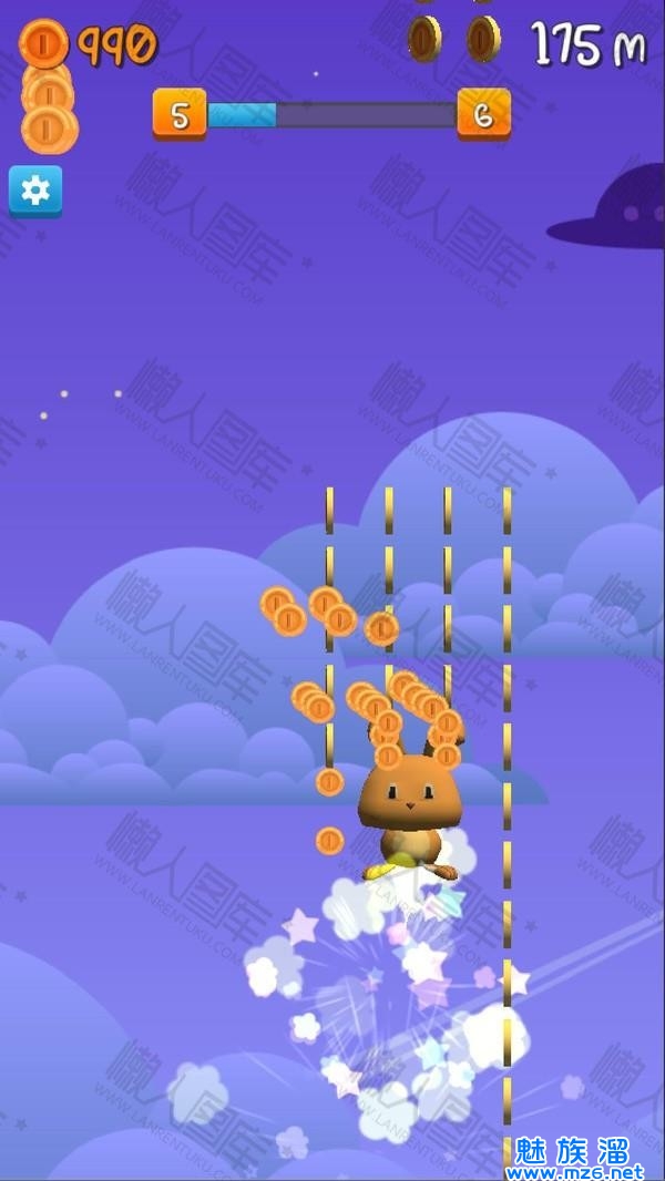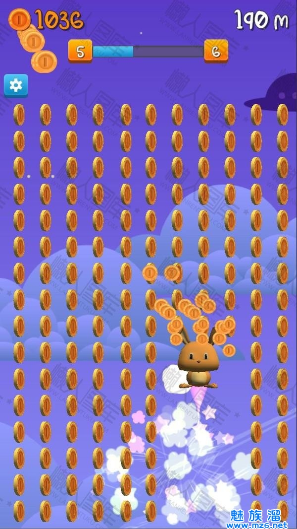 4、玩家在游戏中将帮助一只可爱的兔子,让它尽可能吃更多的金币,