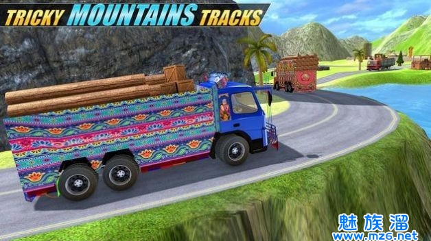 2、崎岖不平的山路非常考验玩家的驾驶技术,将卡车中的混物全部运输到目的地;