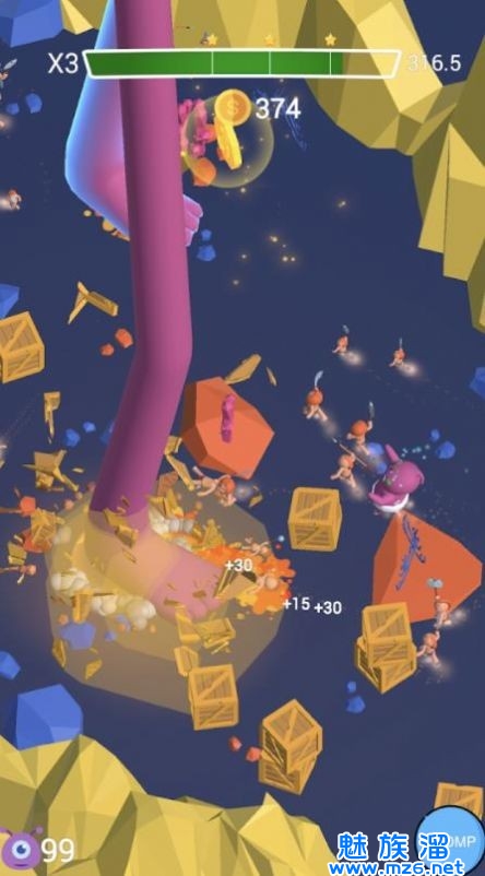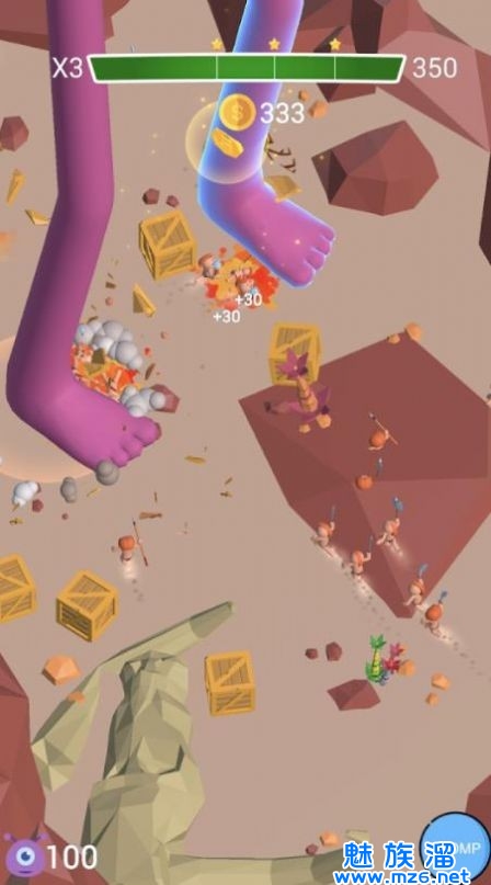 在这款游戏中玩家将会扮演一名巨人,你可以肆意的践踏你周遭的一切事物,肆意的破坏眼前的城市吧,将所有的建筑以及车辆尽数踩烂,不断的获得积分奖励,破坏的越彻底,你获得的分数就越高,让你享受最为有趣的竞技冒险体验,获取各种报酬奖励吧!