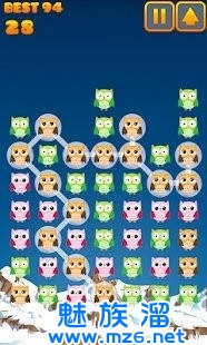 1、规则十分容易,找到两个获两个以上的同样颜色的猫头鹰来完成挑战。