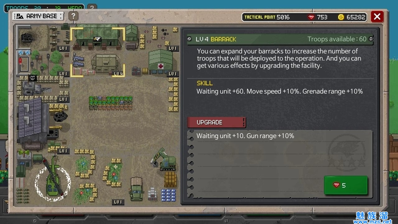 3、为每个类别使用各种武器,武器修改和设备,升级您的基础设施并提高士兵的能力;
