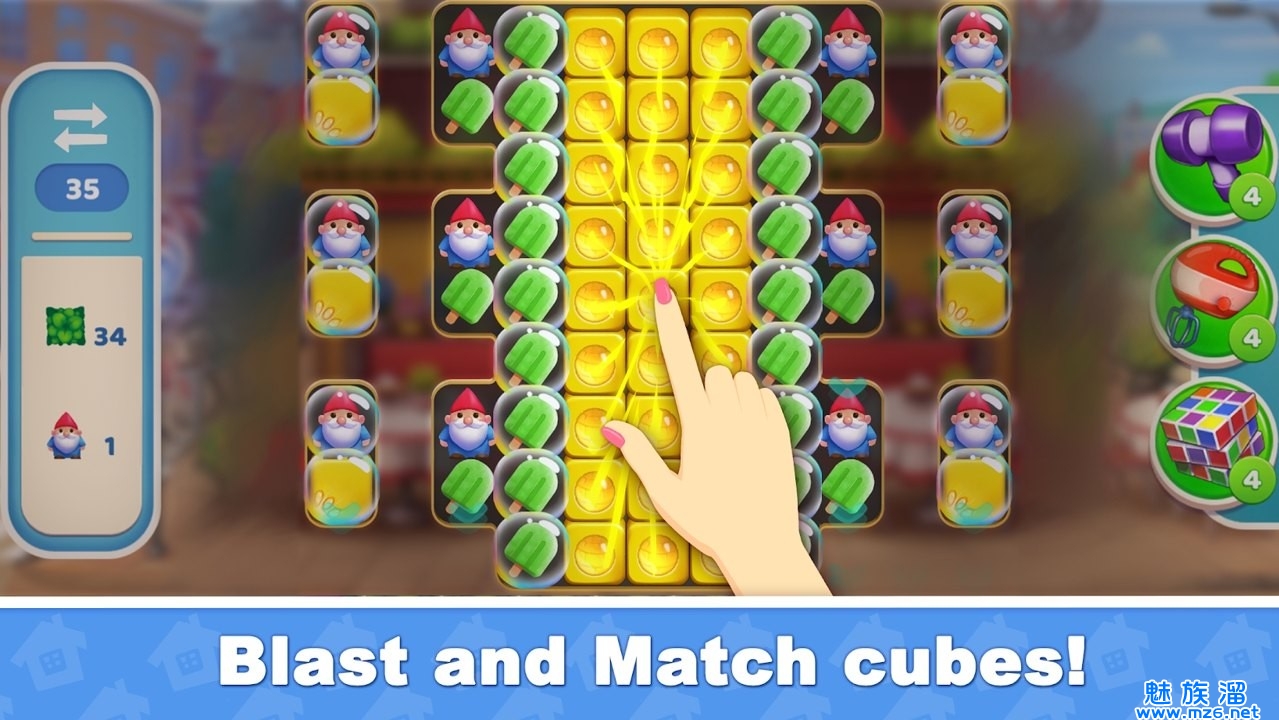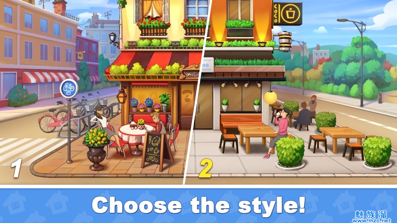 3、参加角色之间令人兴奋的对话并观看他们的生活,随时随地,激动人心的三消比赛,来翻新和装饰城镇的地点。
