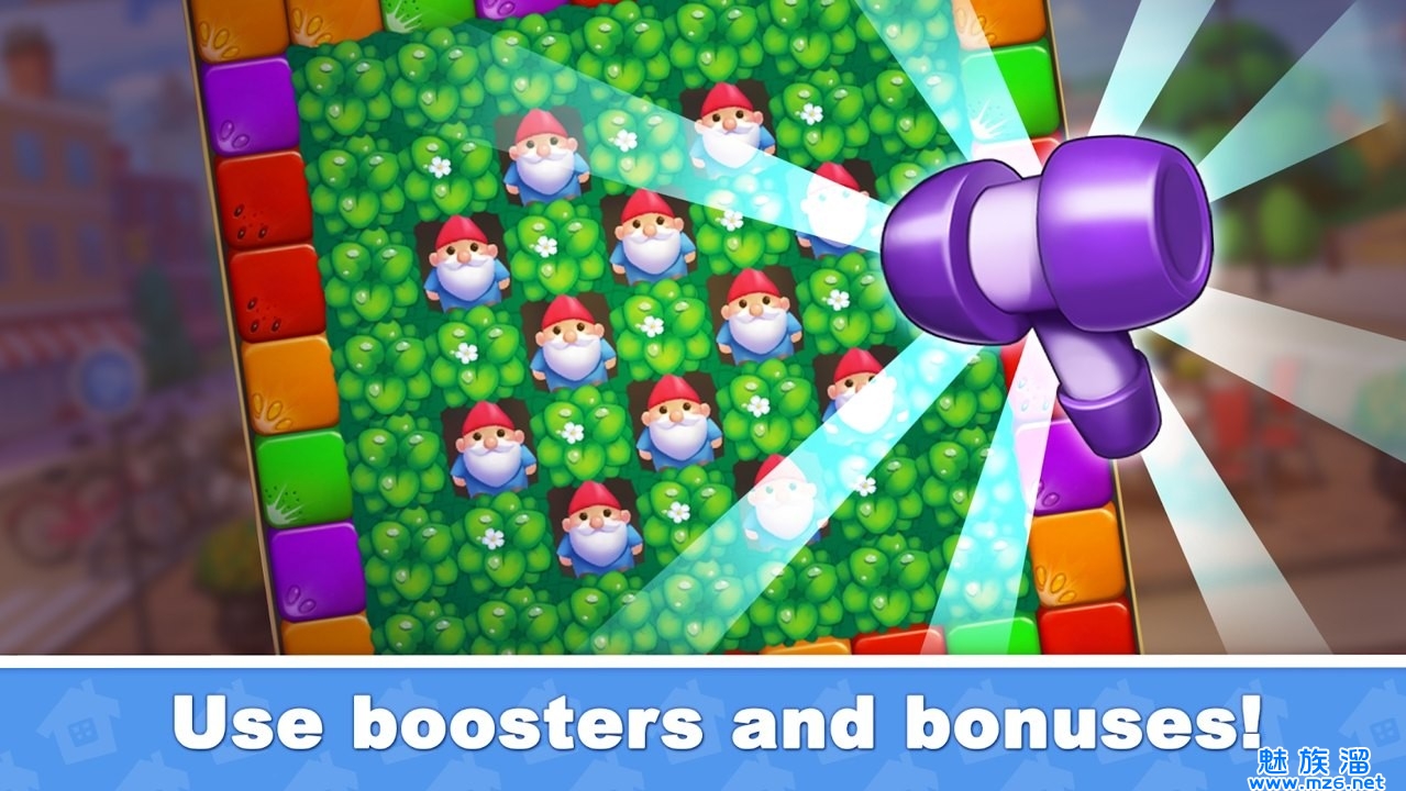 2、在消除挑战中收集能量,帮助大家把城市翻新一遍,让居民们得到更好的生活,改善周围的环境吧。
