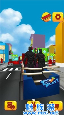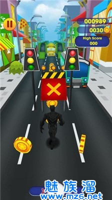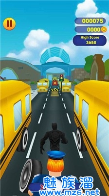 2、左右滑动躲避各种障碍物,上下跳跃飞上公交车,多吃金币可以让你获得更高的分数