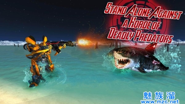 1、作为一辆汽车开车到城市的海洋,变成一个机器人狙击手射手,开始狩猎野生鲨鱼。