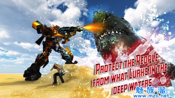 2、机器人变换狙击射击并成为鲨鱼水下鲨鱼猎手模拟游戏,让你拍摄的所有疯狂的鲨鱼。