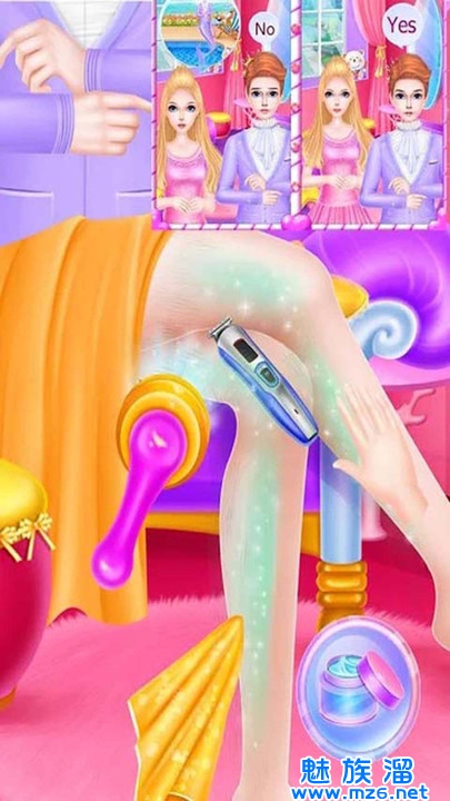 2、细心认真的进行搭配打扮,去除女生的腿毛,让她看起来洁白无瑕;