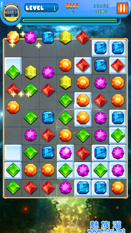 1、经典模式:你必须达到宝石目标分数要到一个新的水平,并尽量保持珠宝板始终有至少一个匹配。