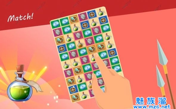 1、规则与其他任何三消游戏相同,但是在这一步中,你控制着两个强大而勇敢的英雄;
