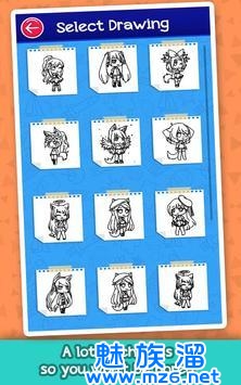 2、丰富多样的关卡绘画页供玩家选择,你将亲手打造出一个个精美可爱的角色形象。