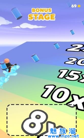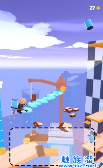 1、收集尽可能多的冰,并在脚下画一条结冰的路,以达到目标,准备绘制一条结冰的冲浪路线。