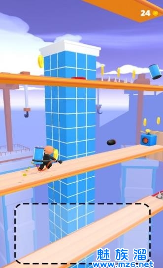 3、需要操控角色不断向前,使用装备来画线通过各种障碍和陷阱,收集道路中的道具进行助力。