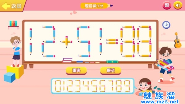 3、通过移动数字小棒为算式匹配正确的答案,训练学生的数感,将对数学口算的要求与游戏机制相结合,提高孩子的速度与正确率,告别枯燥练习。