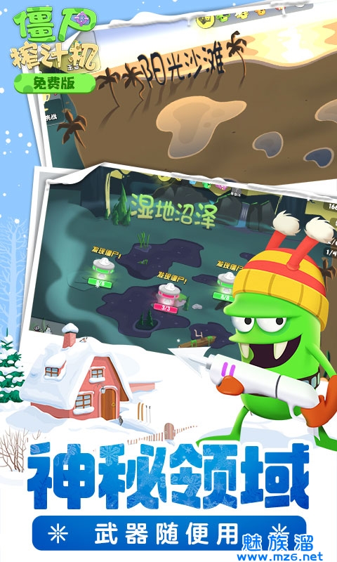 沼泽、荒漠、冰原……外星球上有各种风格迥异的生态环境,这些环境孕育出截然不同的僵尸体系,在捕获僵尸前,首先要征服这片大地,小心别在追捕僵尸的过程里被积雪滑倒喔!