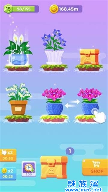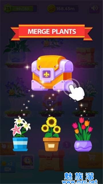 反复点击以更快地得到种子箱,升级以解锁更多种花空间,不要浪费任何的空间。