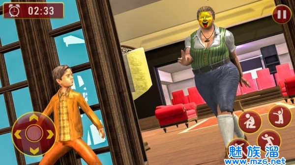 1、逼真的音效模拟,玩法充满挑战性,小心这个邪恶的奶奶试图杀死你;