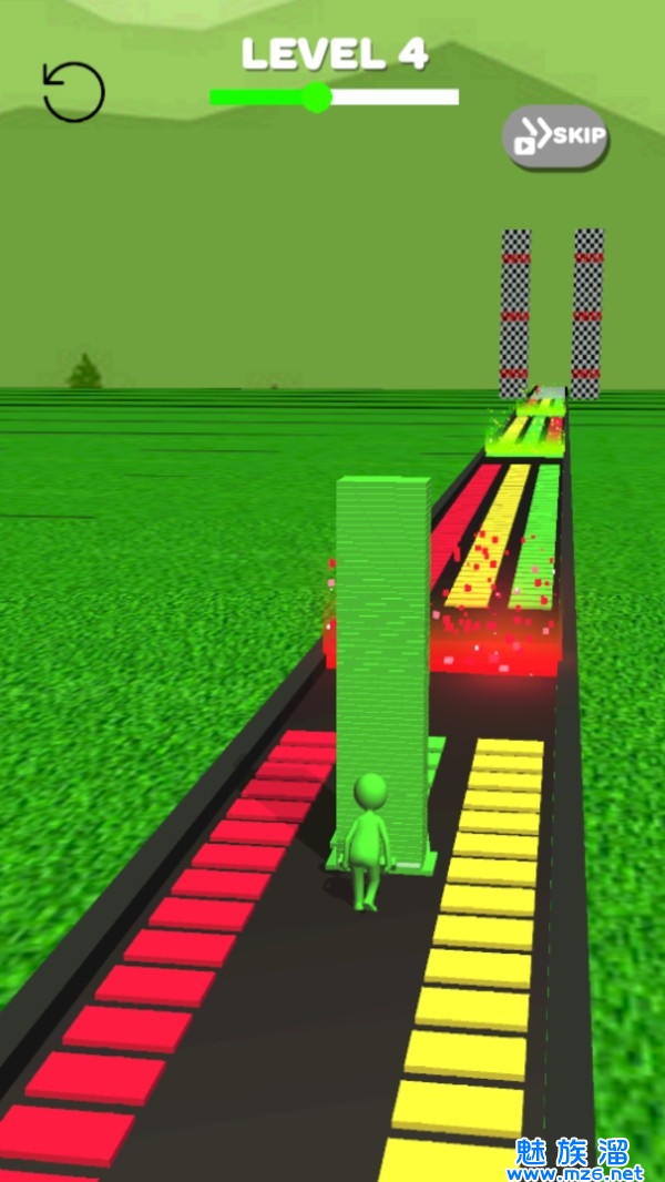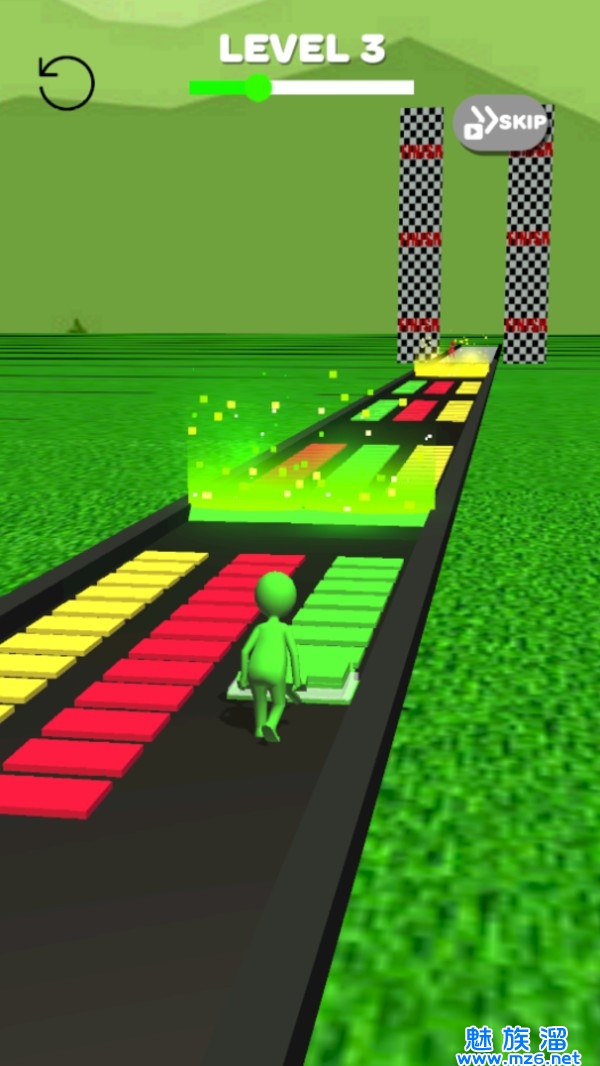 4、小人的颜色可以随意的变化,遇到自己前方的颜色砖块一定要看清楚再选择;