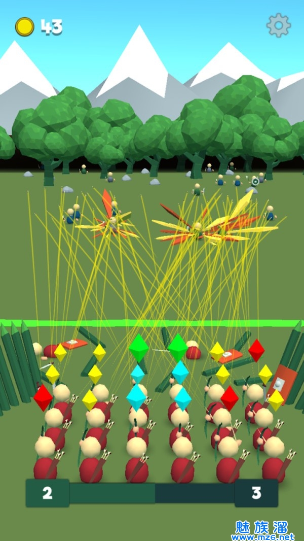 一款需要掌握弓箭去完成众多击杀目标的闯关游戏,进入关卡以后就必须要掌握好野蛮人随时可能越界入侵,这个时候一定要将其所有击败,整个背景都是采用动漫化进行制作的,极为真实的弓箭射击音效带给你沉浸式的体验感受,还有轻松愉快的背景音乐播放让你感受舒适。