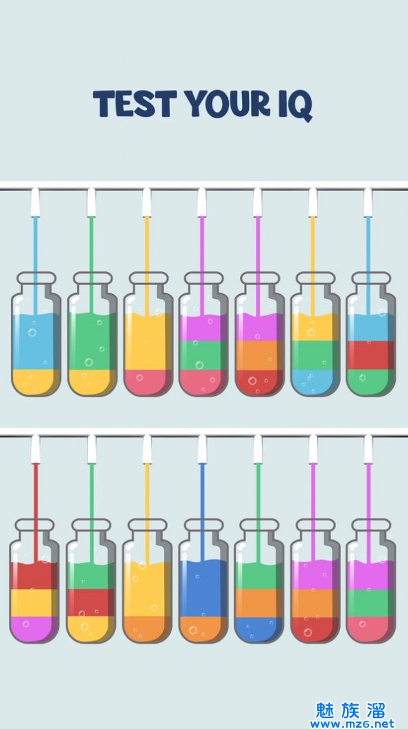 将不同颜色的水按照指定的顺序排列,看起来很简单的小游戏让人停不下来。