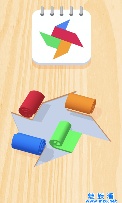一款拼图和裁剪类型的游戏,按照游戏当中的图形要求来进行拼接,需要通过滚动各种颜色的画纸,调整顺序,拼出漂亮的图片。