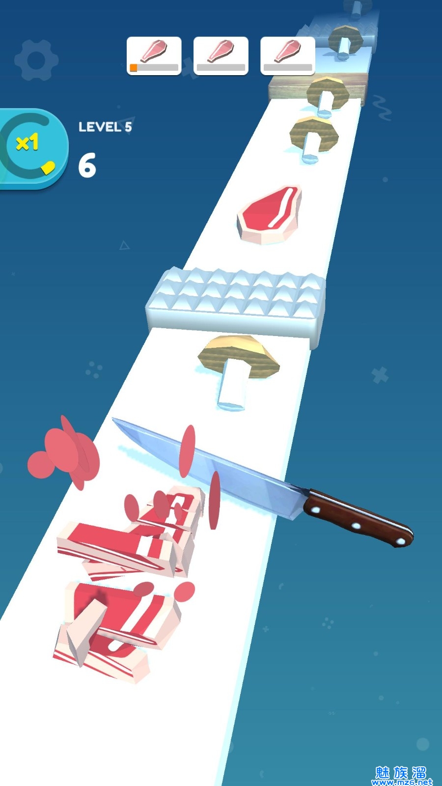 1、点击屏幕来使用你的菜刀,游戏的关卡等级越高,游戏的难度越大,需要的反应力越高