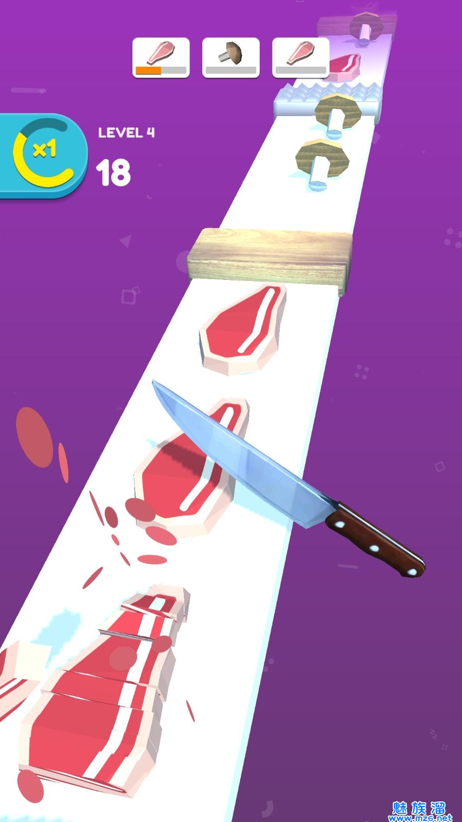 2、轻松简单有趣的挑战模式带给你不一样的乐趣,享受成为一名刀功了得的厨师