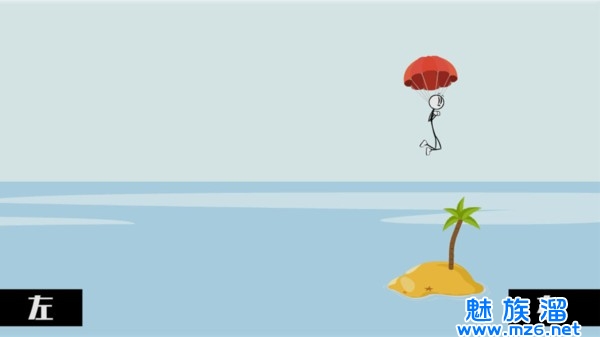 正确使用道具,随手拿着的东西可以帮火柴人解决难题,准备降落伞从飞机上跳下来。