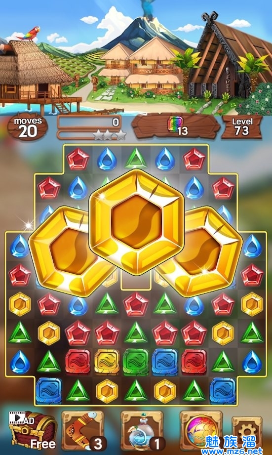 直接按照个人的想法去切换位置,您可以匹配3个相同颜色的宝石顺利的去完成消除,比较容易去掌握操作小技巧,随着关卡的不断提升整体的难度也是可以提升一个层次的,大量的多种完成等你去尝试。